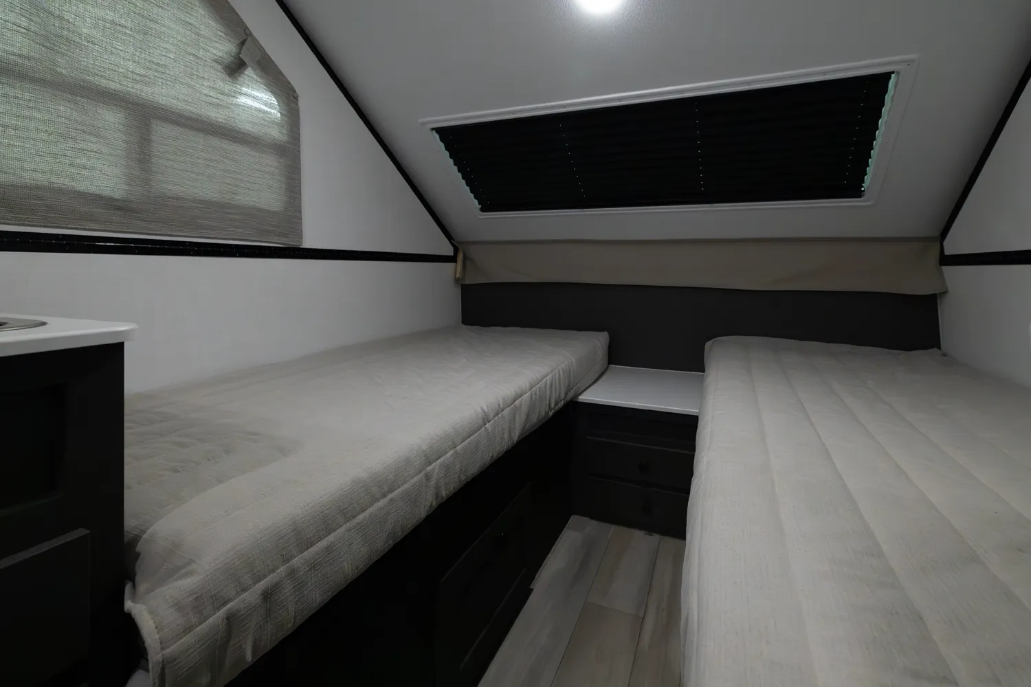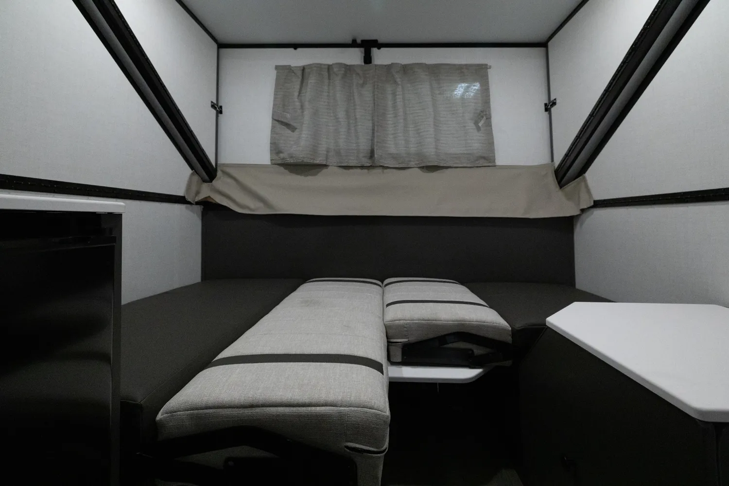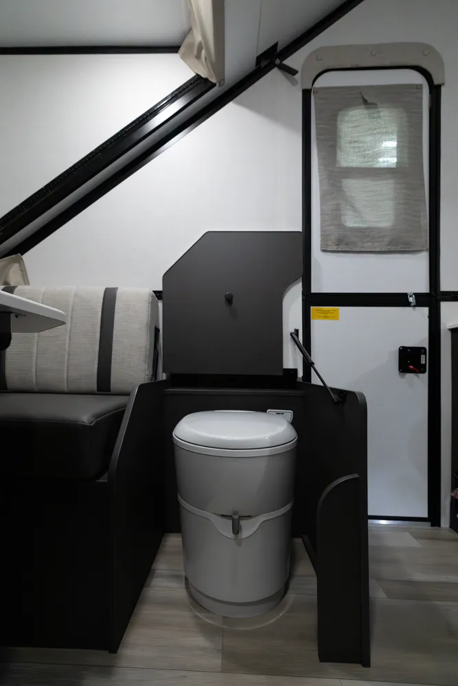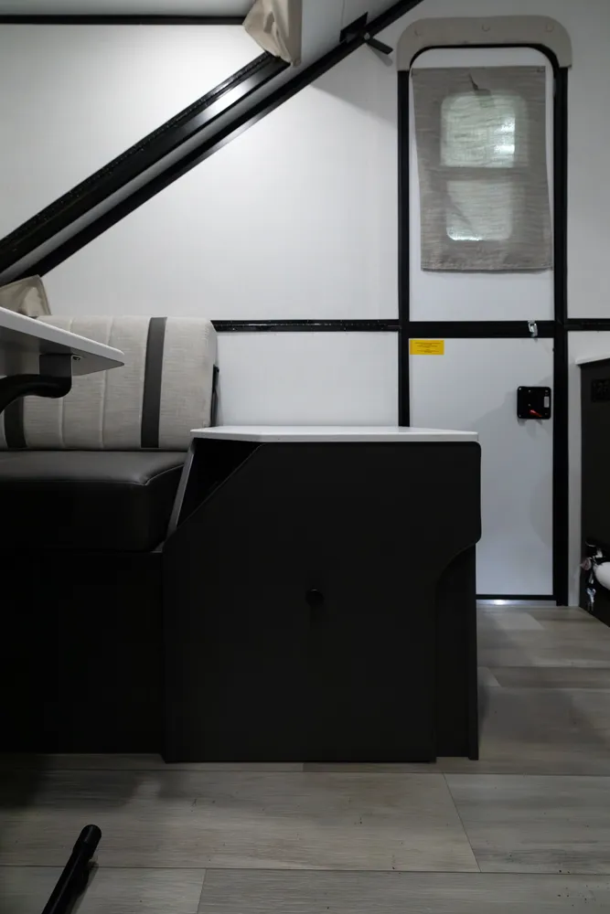 The Flagstaff Hard Side T21HS delivers smart comfort in a compact design. A front dormer provides increased head height above the front dinette, which easily converts to sleeping space. Inside you’ll find a convenient wet bath, cooktop, and sink, while the rear features twin bed platforms with a king bed insert option. An easy-reach front storage trunk adds extra convenience for gear on every adventure.