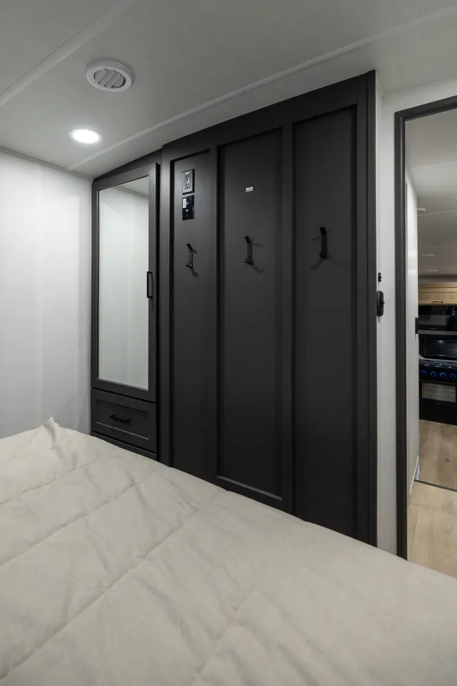 This under-30' fifth wheel packs luxury into a compact design! Enjoy a spacious living area with a 67" theater seat, 44" dinette, and entertainment center with TV. The kitchen offers a pantry, fridge, and plenty of counter space, while the private front bedroom includes a queen bed (king optional) and wardrobe storage. With a roomy bathroom, pass-thru storage, and a 20' awning, it’s the perfect blend of comfort and easy towing.