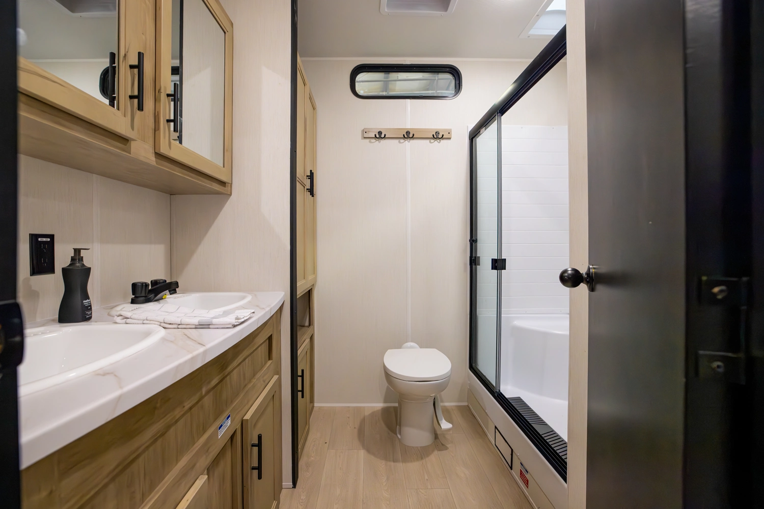• Blackout Glass, Safety Slam, Friction Hinge Entry Door with Window and Shade Prep (N/A on LP models)