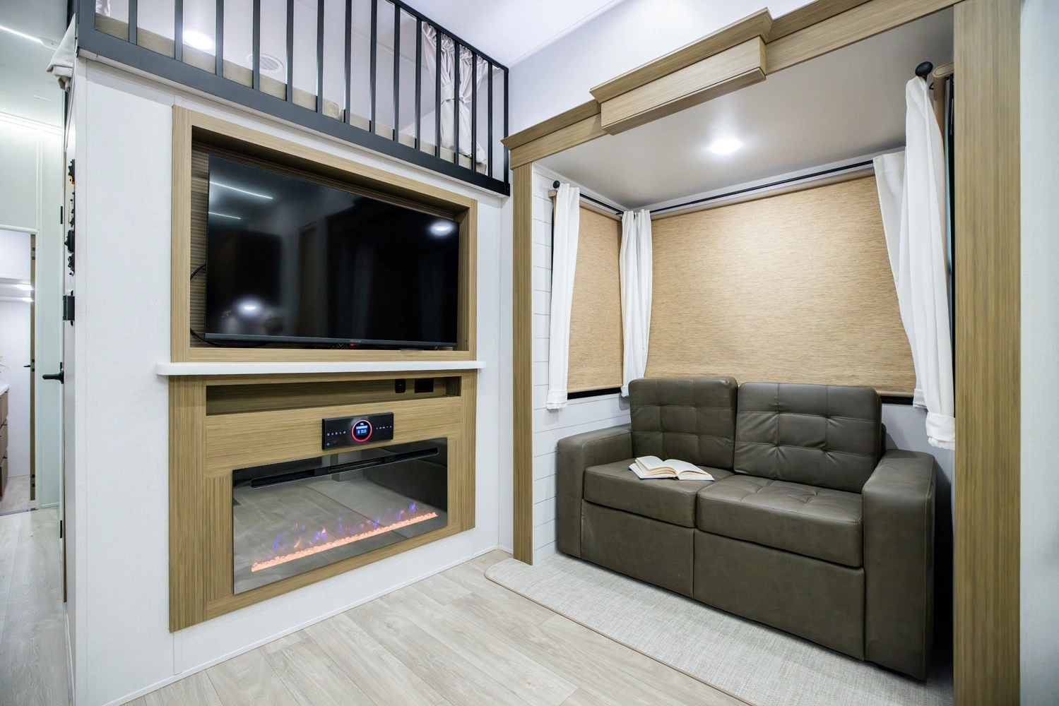The Wildwood Grand Lodge 42FK is a truly exceptional destination trailer. The large front kitchen is equipped with residential appliances, tons of cabinet and pantry space, and a free-standing dinette. The large living area provides two sofas and an entertainment center with TV and fireplace, while the large rear master bedroom offers a full wardrobe and dresser. The HUGE walk-up loft is perfect for friends and family, with four separate bunks and plenty of space to stretch out.